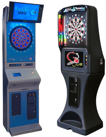 We offer Radikal and Arachnid Dart Boards. We are not limited to those machines however we are slowly building our business inventory based on our customers needs. We also offer non-coin based options such as Grandboard and Steel Tip boards and setup.